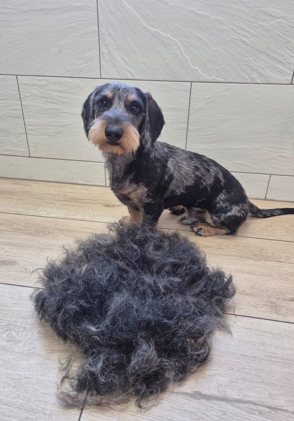 Bekijk Tarieven →Specialistische behandeling voor verharende honden waarbij losse onderwol vakkundig wordt verwijderd.